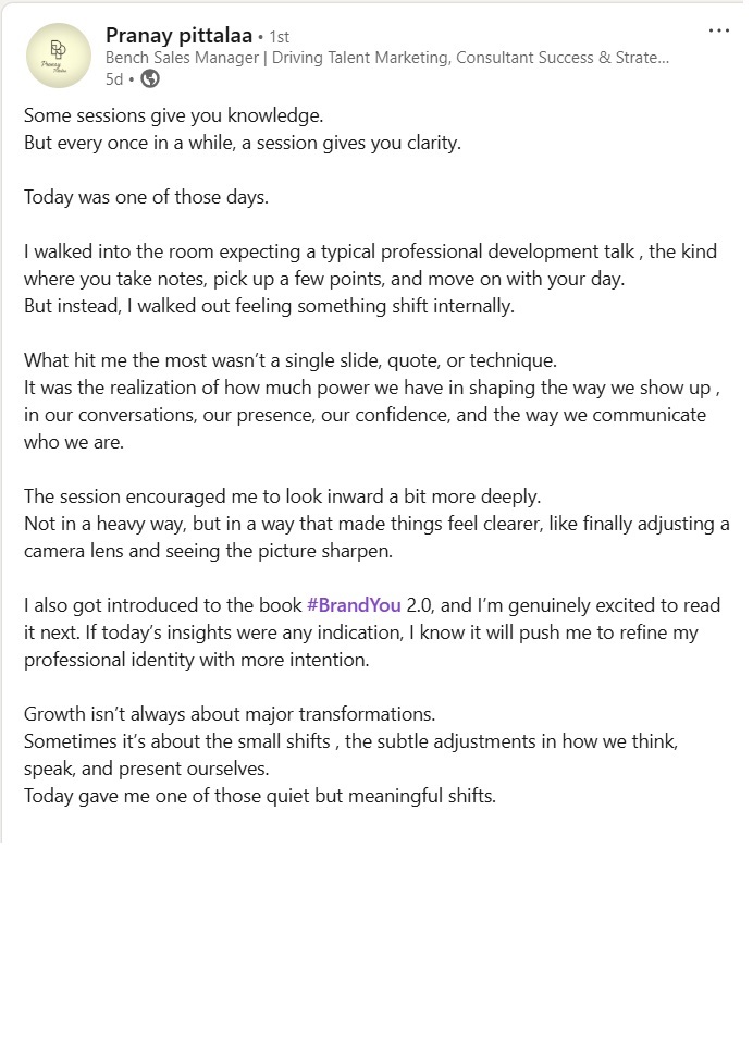In today’s world, where careers change faster than ever and the pressure to constantly “prove yourself” is real, many professionals quietly ask one question — Am I truly showing my best self? If you have ever left a meeting, an interview, or a presentation with that uneasy feeling, then #BrandYOU 2.0 by Vinay Mantha is a book that speaks directly to you.